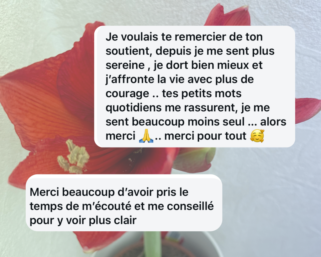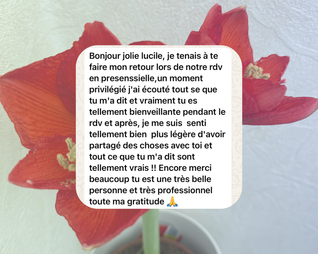 La confiance se maintient aussi par la discrétion, c’est pourquoi vous le comprendrez les retours de mes clients sont présentés de façon anonymes afin de préserver la vie privée des personnes qui viennent à moi.